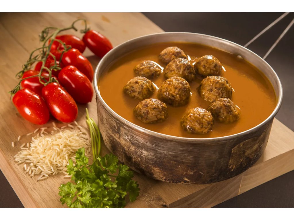 Masové koule. Původně z Itálie, ale podmanily si celý svět. Velmi oblíbené ve Státech, ale také ve Skandinávii. Asi tušíte proč, že? Naše koule z hovězího předního mletého masa jsme namixovali s rýží basmati a dochutili pouze petrželí. Pak již jen pepř a sůl a hotovo. Sladká rajská omáčka je klasikou z kořenové zeleniny a rajského protlaku, s lehkým tónem skořice. Věřte, že toto bude trhák, po kterém se utlučou hlavně vaše děti. Poměr masa a rýže basmati jsme zvolili takový, aby bylo jídlo kompletně vyvážené jako celek, ale pokud si k němu uděláte těstoviny, získáte regulerní dvě porce pro vydatný oběd či večeři.