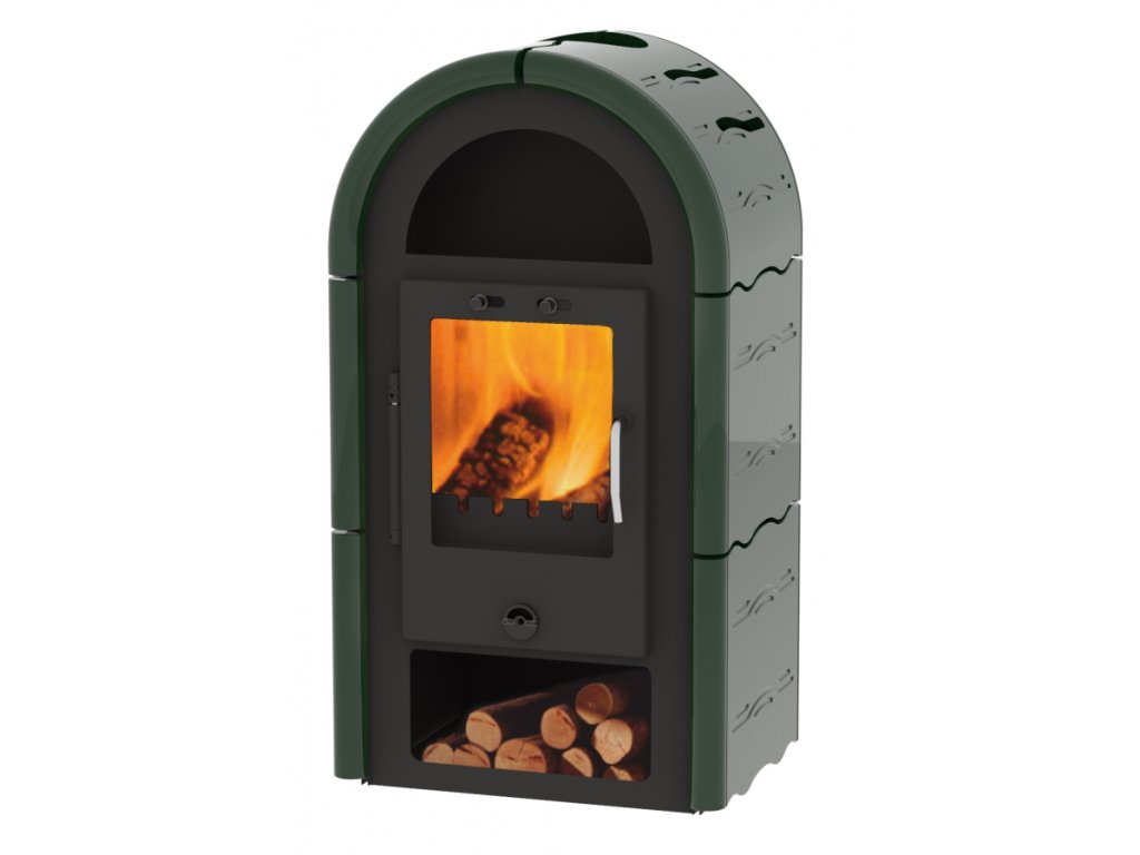 ALFA PLAM, krbová kamna ORIJENT s keramickou obložkou, zelené, horní, průměr 150 mm, 6 kW