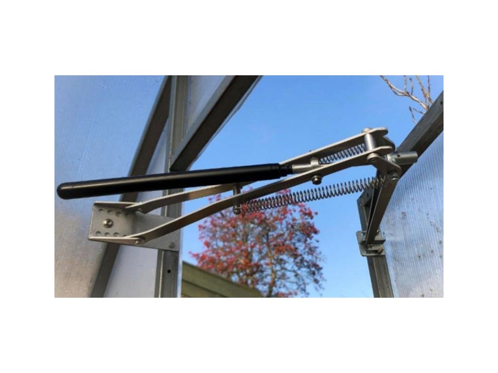 Píst s pákou funguje na bázi tepelné roztažnosti a se zvyšující se teplotou ve skleníku posunuje pákou a otvírá okno.