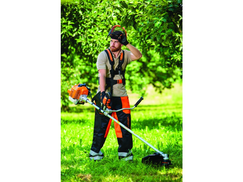 Veškeré ovládací prvky křovinořezu jsou snadno dostupné díky umístění na hliníkové obouruční rukojeti ve formě řídítek, kterou lze univerzálně nastavovat, díky čemuž má křovinořez velmi pohodlné a přesné vedení. Křovinořez má pevné madlo z hliníkové trubky, které dokáže odolat vysokému zatížení. Profesionální zádový popruh s perfektním rozložením hmotnosti mezi rameny a hrudníkem a podložka (plovoucí kyčel) s rychloupínacím mechanismem zajišťuje příjemnou manipulaci.
