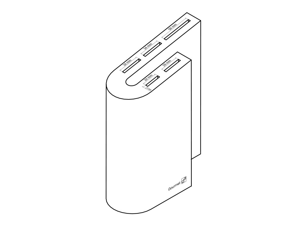 V bloku je 5 otvorů pro nože. Otvory jsou velikostí uzpůsobeny pro sadu damaškových nožů G21 Gourmet Damascus. Do stojánku však můžete umístit jakékoliv kuchyňské nože stejných rozměrů.