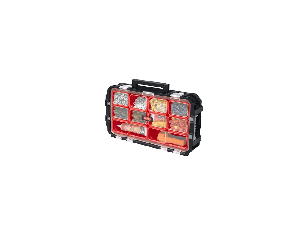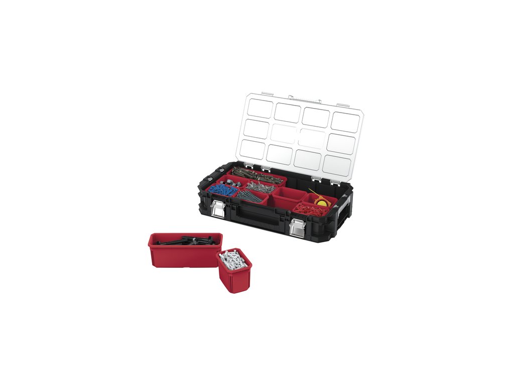 Box na kolečkách Keter Connect využijete pro uskladnění pracovních pomůcek. Uschovejte v něm nářadí a řemeslné potřeby. Kromě toho, že si vše potřebné uložíte do vnitřní části boxu, jistě naplníte také organizér, který je součástí balení. Ten propojíte s horní částí boxu nebo ho použijete samostatně. S novým vybavením snadno najdete své náčiní a máte vše po ruce, kdykoliv potřebujete.