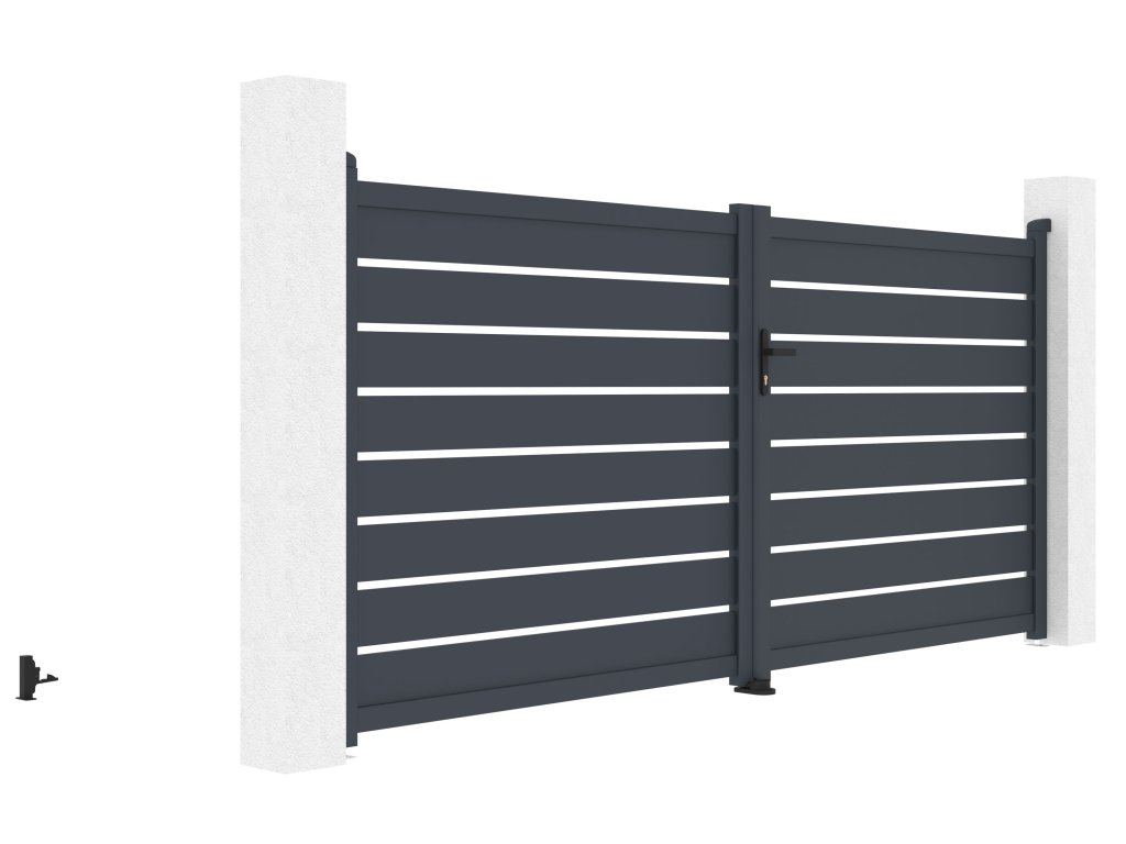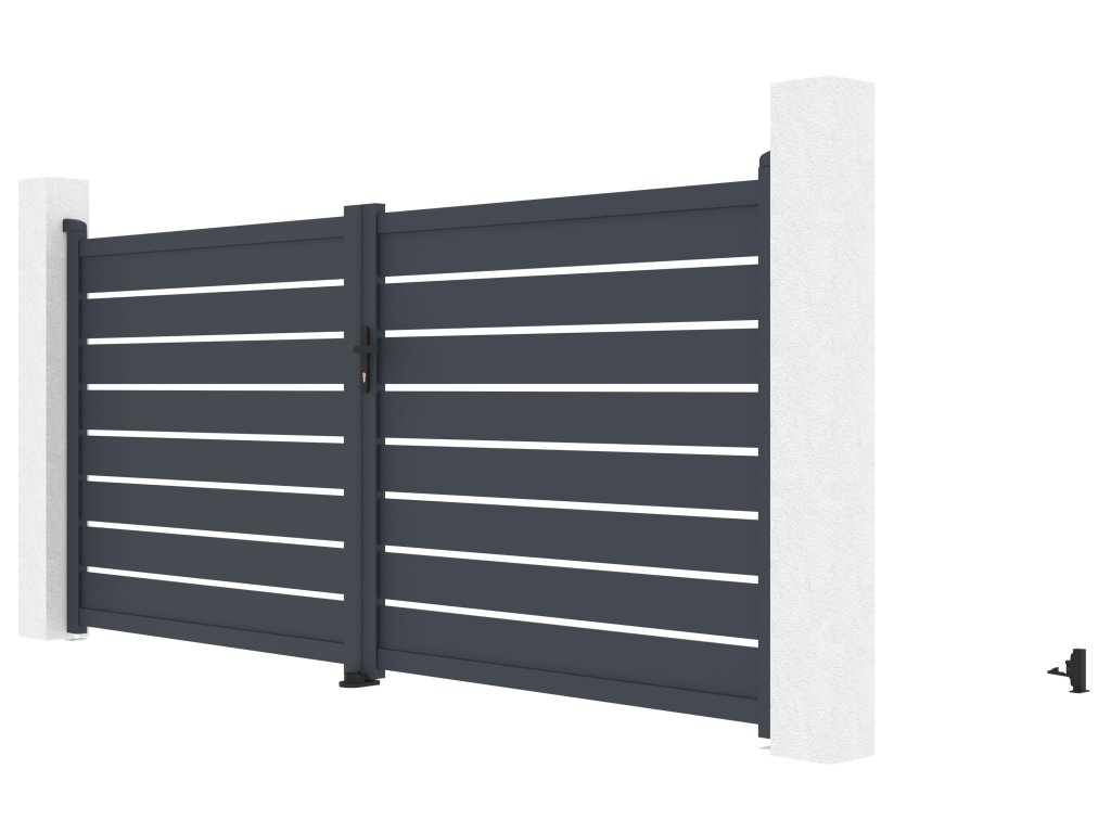 Výplň s horizontálně uloženými lamelami v atraktivním grafitovém provedení kombinuje dostatek soukromí s moderním designem, takže brána s otevíráním dovnitř bude slušet každému typu oplocené stavby.