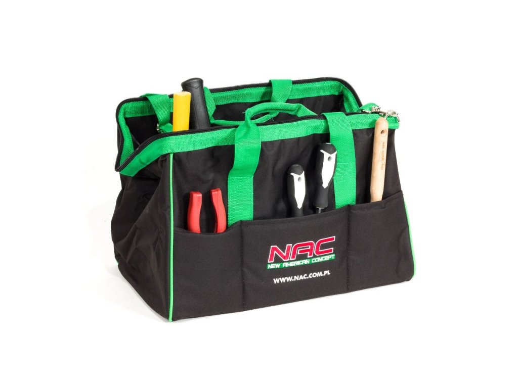 Máte doma elektrické nářadí řady NAC AKUMULTISYSTEM 20V? Pořiďte si pro něj funkční brašnu NAC. Je vyrobená z vodotěsného materiálu. Navíc má rukojeť pokrytou protiskluzovou vrstvou, takže ji pohodlně přenášíte. Zesílené dno a okraje dobře drží tvar. Do postranních kapes si uložíte nejrůznější ruční nářadí.