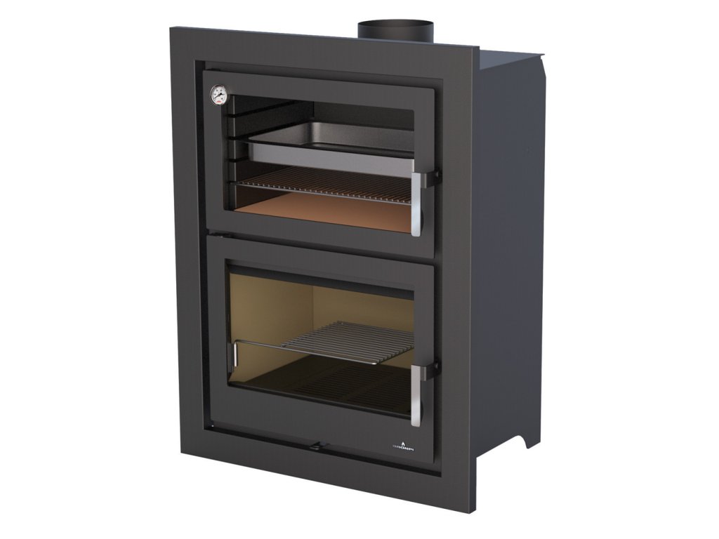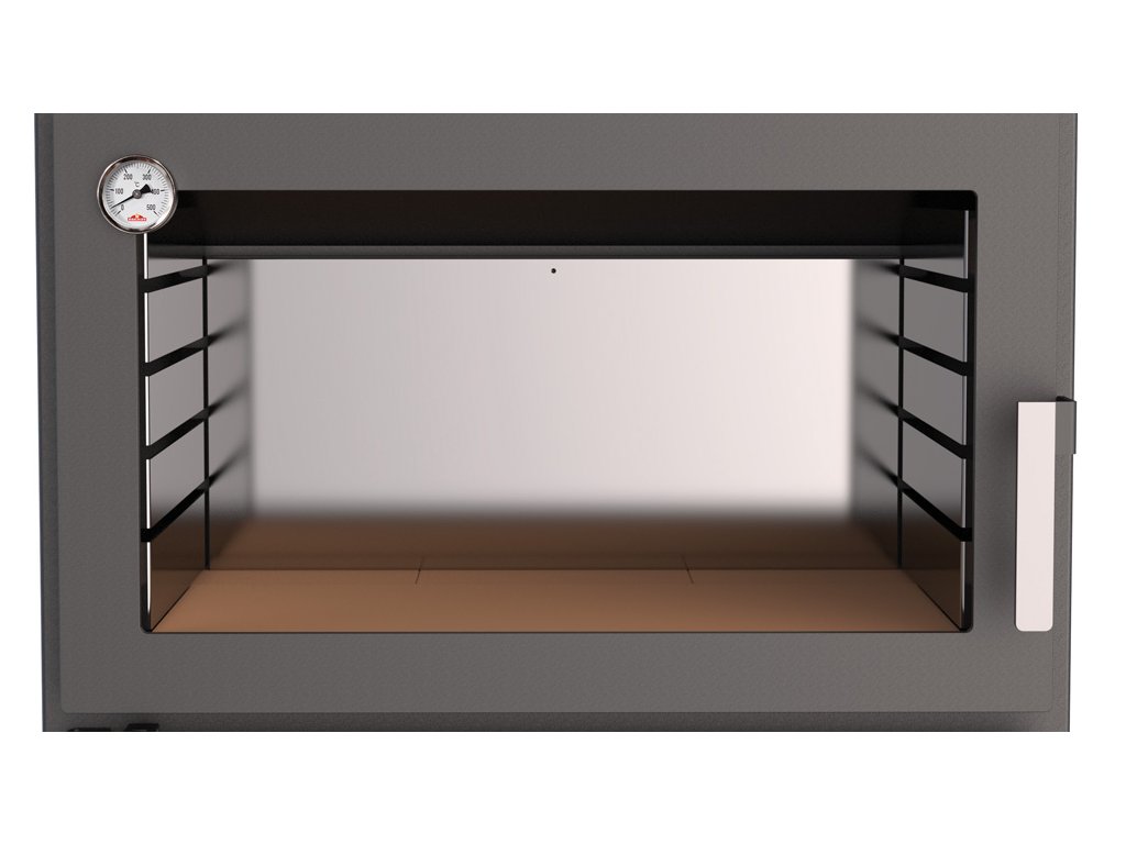 Trouba je ocelová ve spodní části jsou žáruvzdorné tvarovky. Za příplatek je možné dodat troubu v nerezovém provedení.