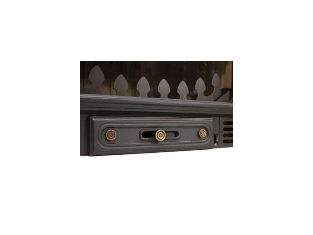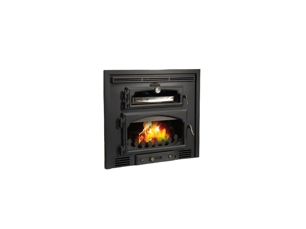 Trouba v horní části krbové vložky je vybavena teploměrem, plechem na pečení, spodní část trouby je vyložena žáruvzdornými tvarovkami.