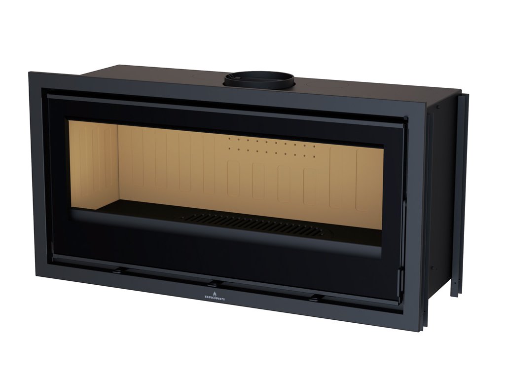 Široká krbová vložka na velká polena vyrobena ve Španělsk od výrobce Bronpi. Je vyrobena z oceli, litiny a vermikulitové výplně ve spalovací komoře.