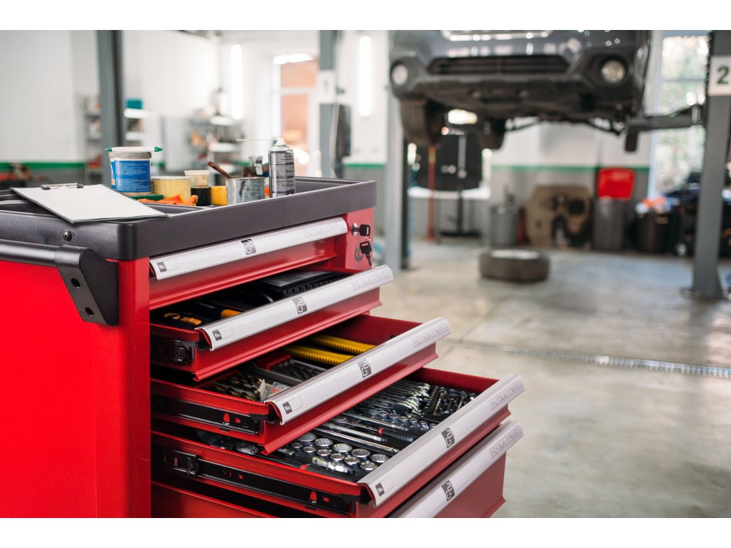 Všech šest zásuvek dílenského mobilního boxu na nářadí G21 Cooper 6 jsme pro snadnou orientaci v uloženém nářadí vybavili popisovacím systémem. V očíslovaných zásuvkách si snadno označte ikonky, znázorňující uložené věci. Získáte tak přehled o uloženém nářadí, právě potřebné kousky najdete na „první dobrou” a nemusíte postupně procházet jednotlivé zásuvky.