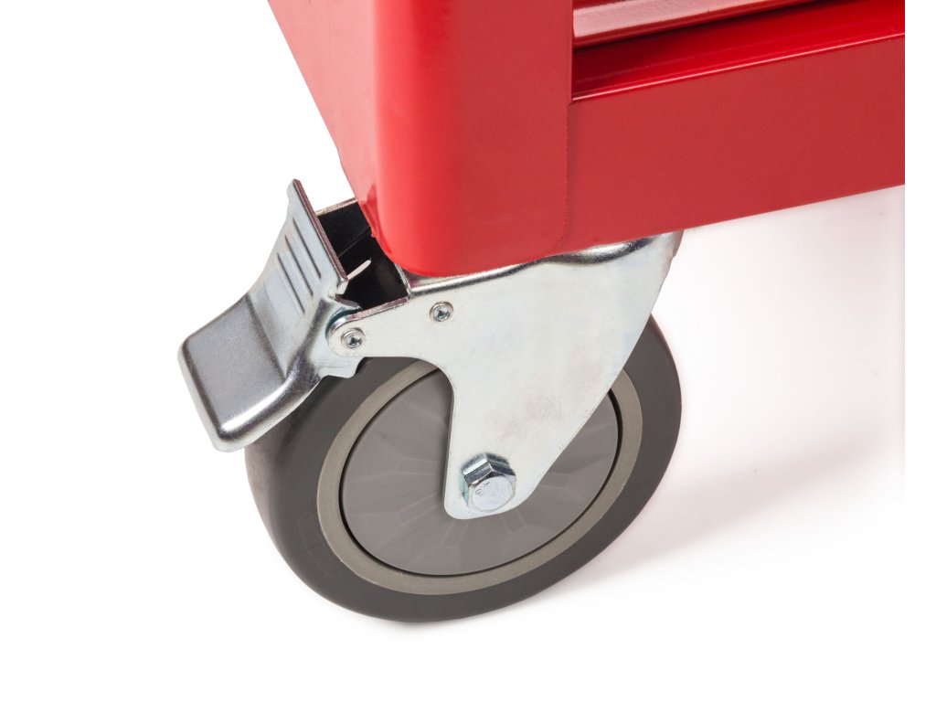 Náhodného otevření při přesouvání se bát nemusíte – všechny zásuvky jsou opatřeny bezpečnostní pojistkou, která nežádoucímu otevření zásuvek zabrání. Pro větší bezpečí uloženého nářadí jsme dílenský vozík navíc vybavili i centrálním zámkem pro zásuvky a zámkem pro boční skříňku.