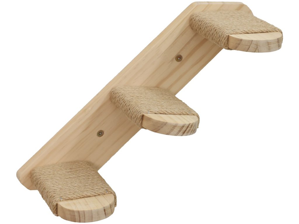 Dřevěný žebřík pro kočky, s jutou, slouží jaké lezecká pomůcka, umožňuje vytvoření individuální lezecké krajiny, dostatek prostoru a pohybu, rám z masivního dřeva, snadná možnost oboustranné montáže, rozměry 38x16,5 cm.