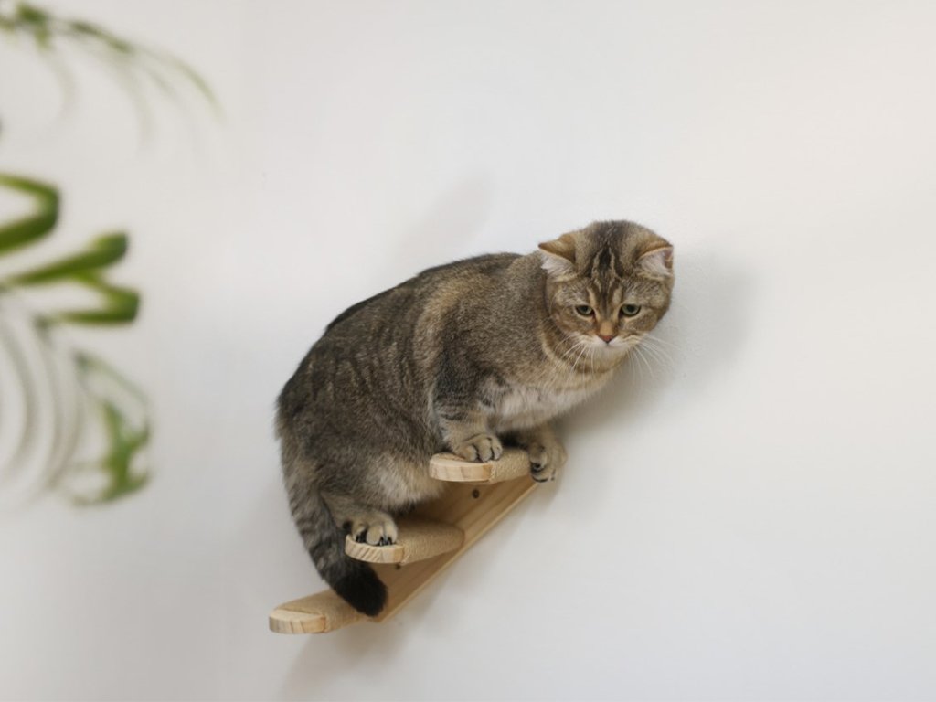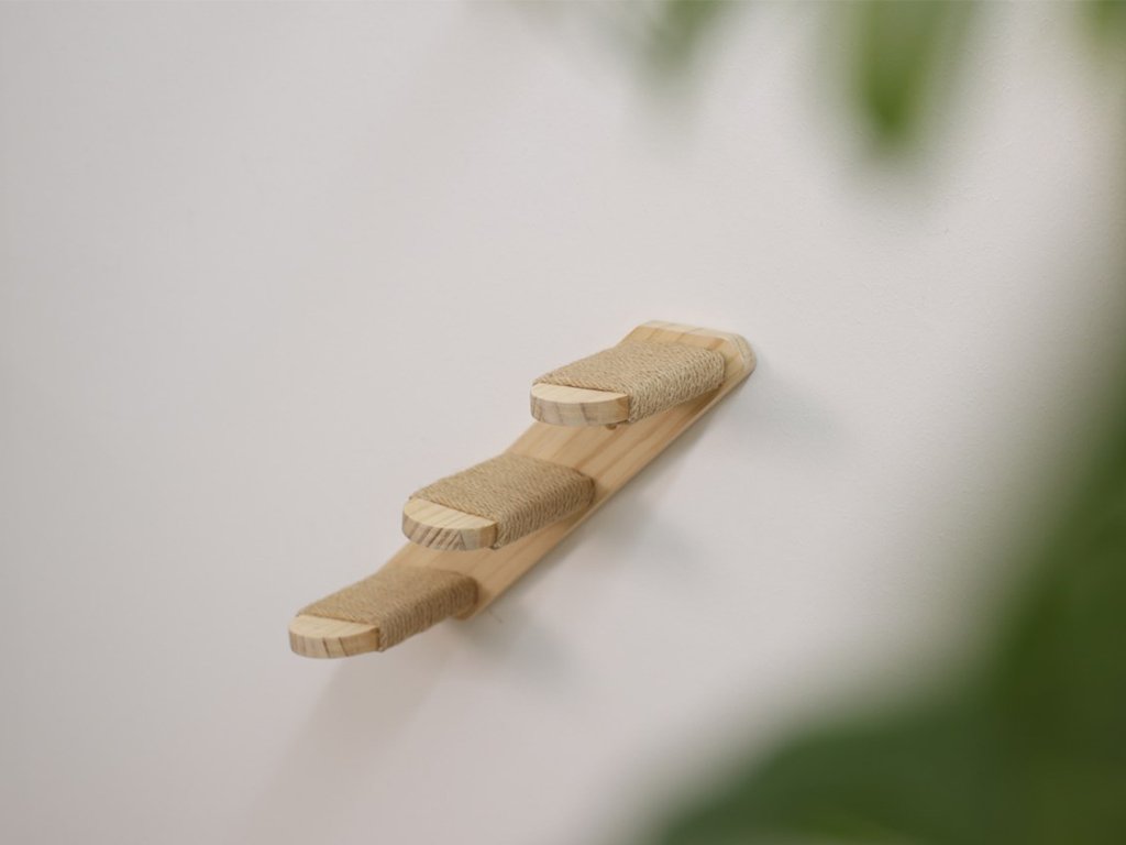 Každý schodek žebříku má rozměry 8x15 cm, což zajišťuje ideální velikost pro bezpečné a pohodlné šplhání koček. Celkové rozměry žebříku jsou 38x16,5 cm, které umožňují jeho snadnou montáž na zeď a maximální využití prostoru v každém interiéru.