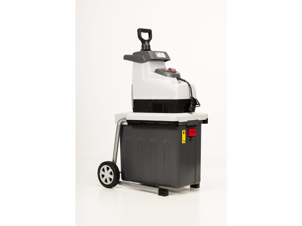 Elektrický drtič větví, motor s výkonem 2 800 W a ochranou proti přetížení. Ocelová řezací fréza pro drcení větví do průměru 44 mm. Odpadní nádrž s objemem 60 l. Bezpečnostní funkce změny směru otáčení. Praktická přepravní kola.