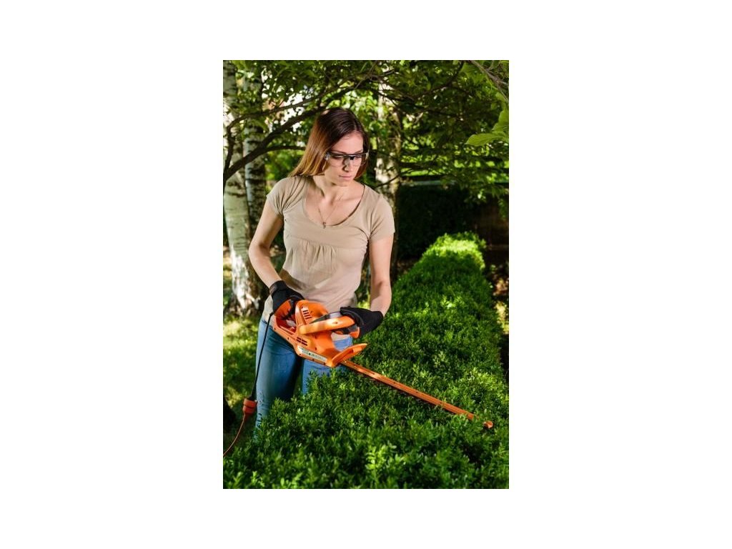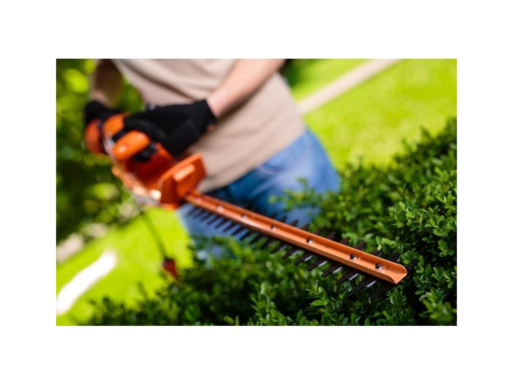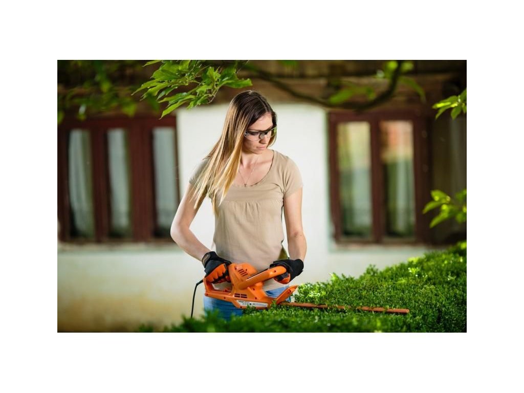 Dvojitá, protiběžná žací lišta o řezné délce 47 cm, vám dovolí upravit porosty až do průměru 20 mm. Pevná zadní rukojeť je vybavena prodlouženou spouští a opatřena pogumováním pro pohodlné stříhání. Samozřejmostí jsou bezpečnostní prvky, jako dvouruční ovládání, elektrická brzda, ochranný štít, který zaručí vaší bezpečnost při manipulaci s plotostřihem a úchyt kabelu, který zabrání jeho poškození.