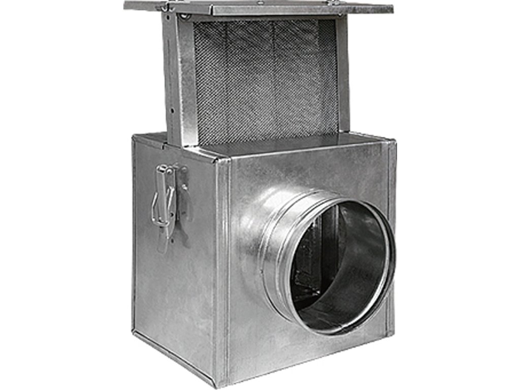 Mechanický filtr do rozvodů teplého vzduchu.