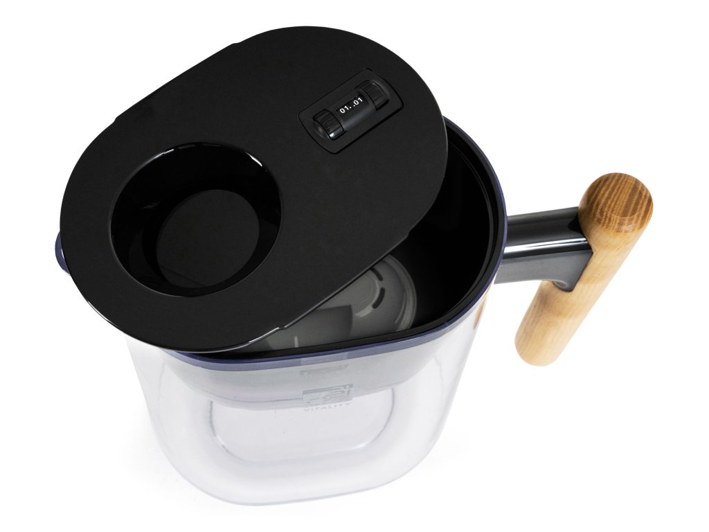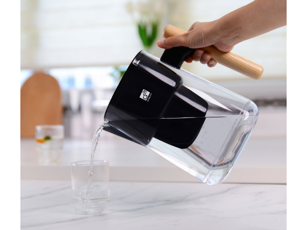 Velice jednoduše. Konvice s celkovým objemem 2,5 l vody má ve víku samostatnou nálevku, takže ji snadno naplníte bez nutnosti sundání víka. Voda se z oddělené nádržky přefiltruje do spodní části konvice a vy si tak do sklenice na pití nebo do varné konvice na čaj či do kávovaru nalijete dokonale čistou a lahodnou vodu bez veškerých škodlivých látek.