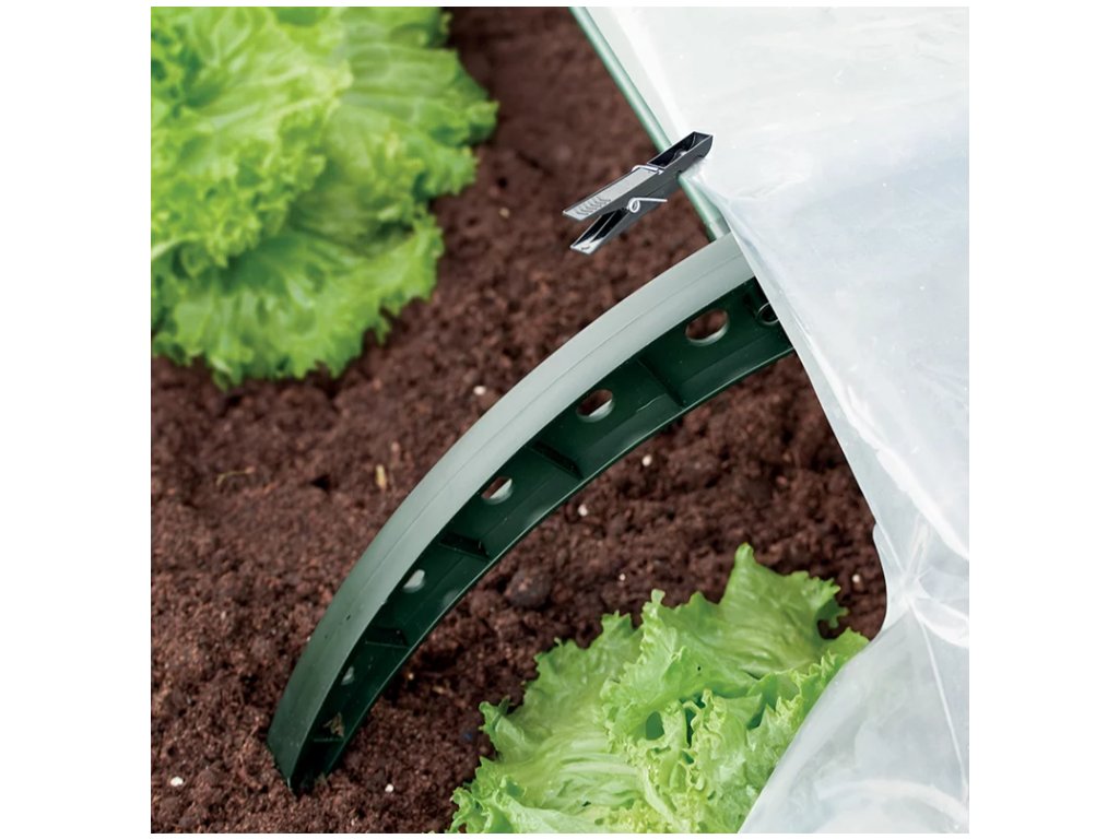 Fólie je vybavená hliníkovými očky. Pomocí nich upevníte fóliový skleník k zemi. Chrání rostliny před deštěm a větrem. Díky průhledné fólii na svou úrodu dobře vidíte a snadno zkontrolujete, jak se jí daří a kdy je připravená ke sklizni.