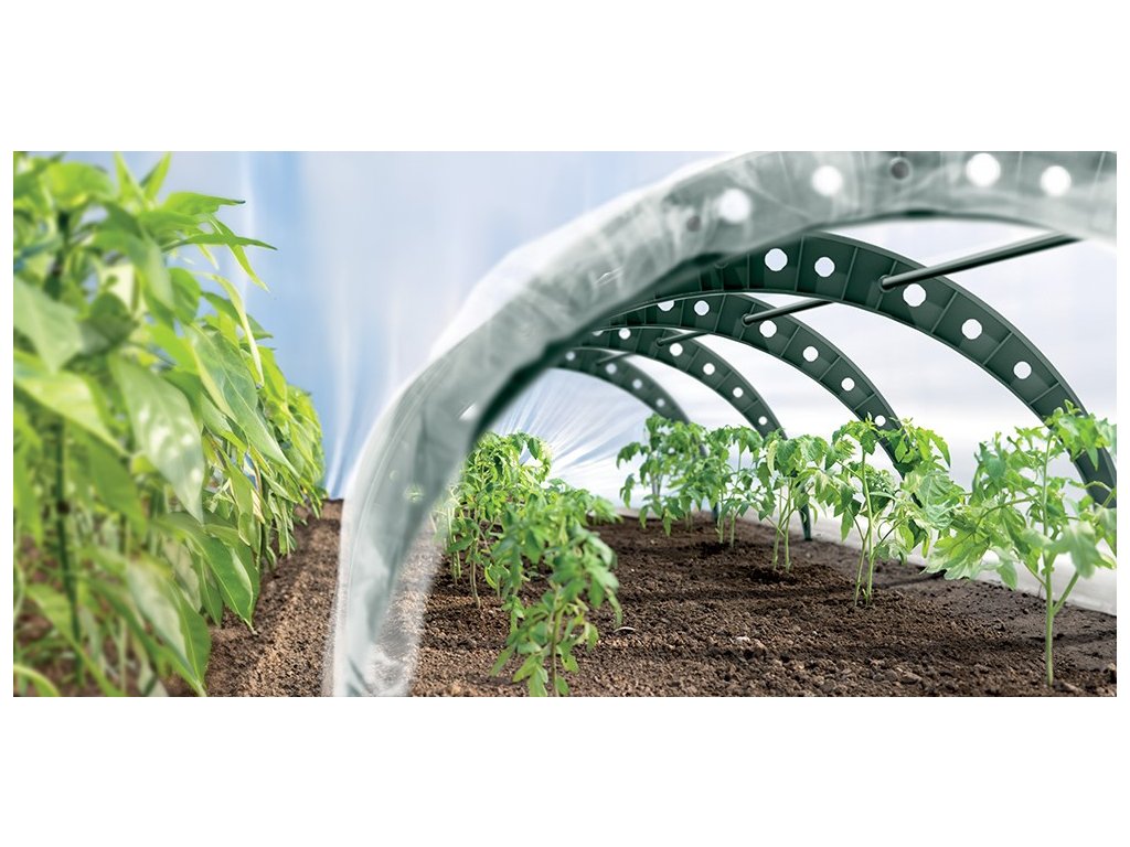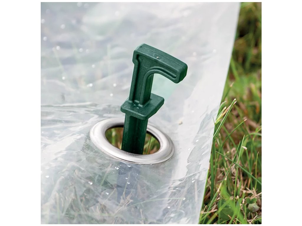 Fólie je vybavená hliníkovými očky. Pomocí nich upevníte fóliový skleník k zemi. Chrání rostliny před deštěm a větrem. Díky průhledné fólii na svou úrodu dobře vidíte a snadno zkontrolujete, jak se jí daří a kdy je připravená ke sklizni.