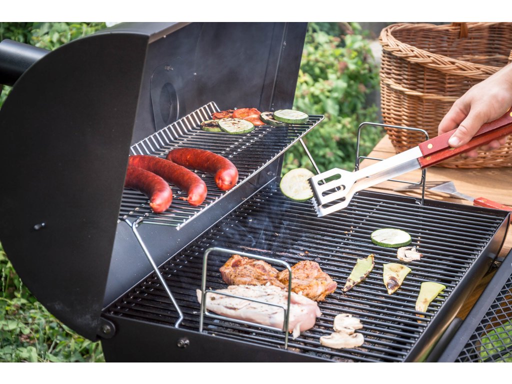 Velký zahradní gril s udírnou má dvě topeniště a grilovací plochy. To znamená, že můžete připravovat pokrmy v různé intenzitě žáru současně. K jeho roztopení použijte dřevěné uhlí, dřevo nebo brikety. Pro dokonalý zážitek z uzení doporučujeme použit tvrdé dřevo, např. z dubu, buku nebo břízy. Na závěr použijte dřevěné piliny nebo hobliny z tvrdého dřeva, ideálně švestky, jabloně nebo hrušky.