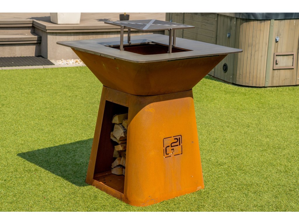 Cortenový gril G21 je konstrukčně řešený tak, aby grilování na něm bylo maximálně účelné. Ve spodní části grilu je krytý prostor pro ukládání dřevěných polen.