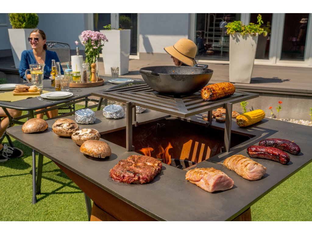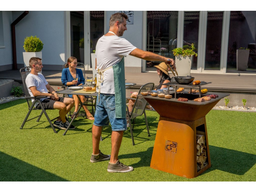 - Široké využití – corten gril s planchou využijete i v komerčním provozu pro efektivní předvádění přípravy jídel