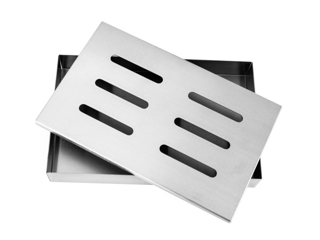Důmyslně řešená nerezová krabička s víkem se po naplnění dřevěnými lupínky nebo štěpkami zavře a vloží mezi hořáky plynového grilu, případně na rošt grilu na dřevěné uhlí nebo grilu elektrického.