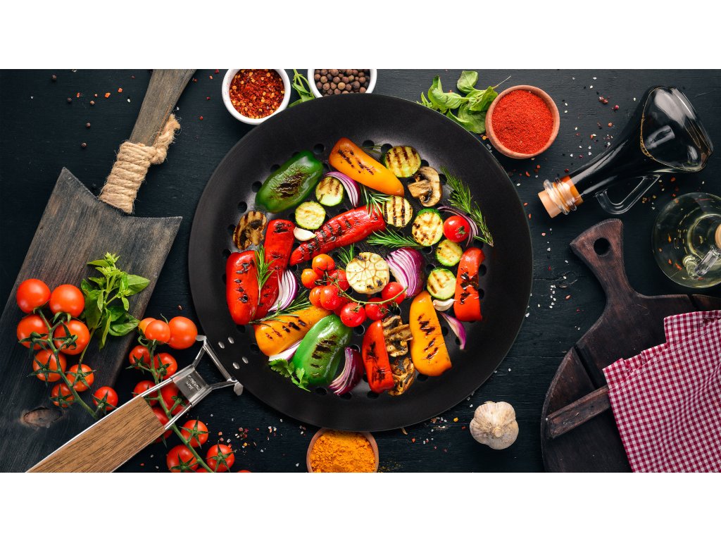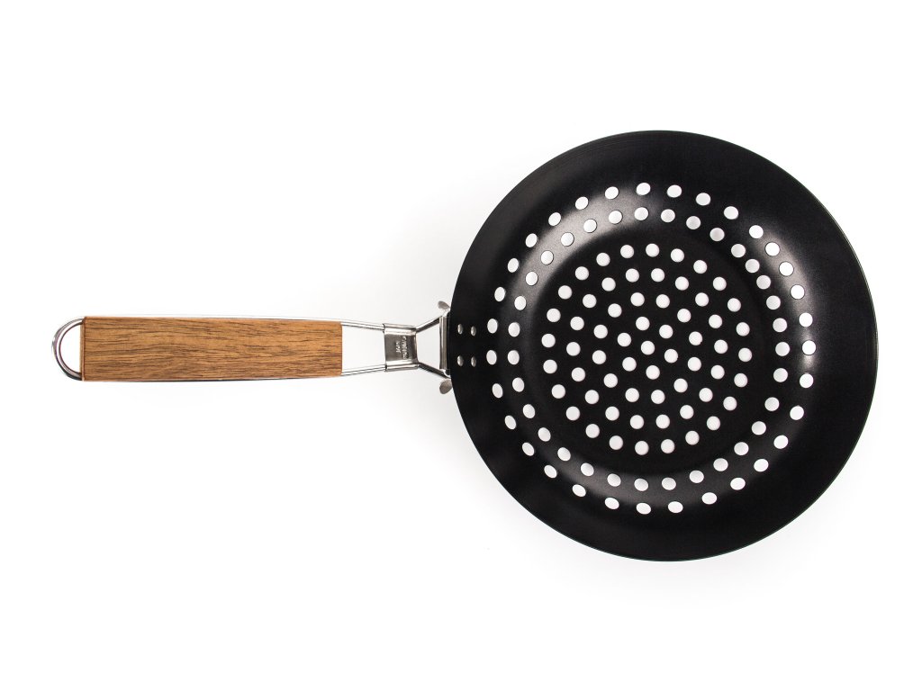 - Pánev je ideální i pro grilování menších kousků masa, ryb nebo zeleniny, které by běžným roštem propadly dolů