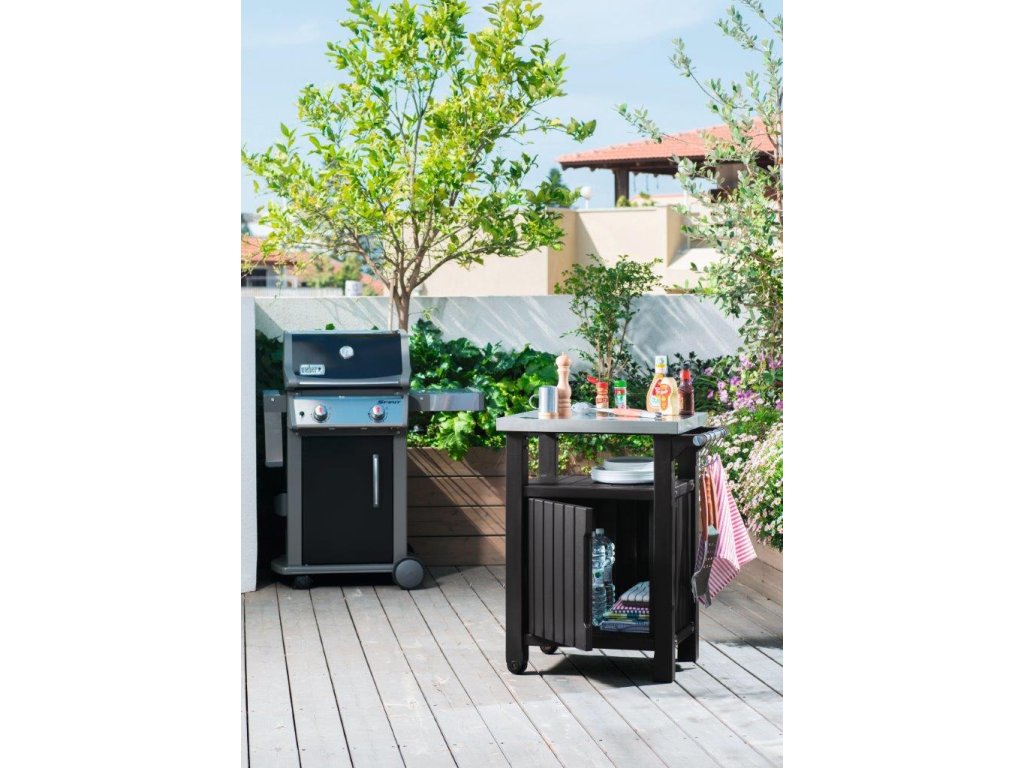 Tento multifunkční grilovací stůl si prostě zamilujete. Slouží totiž jako úložný prostor a zároveň jako odolná kuchyňská deska. Můžete tak i venku servírovat a připravovat perfektní pokrmy.