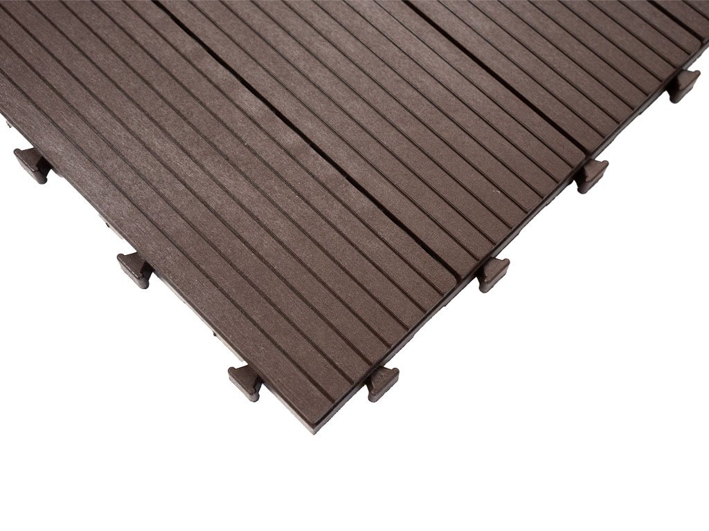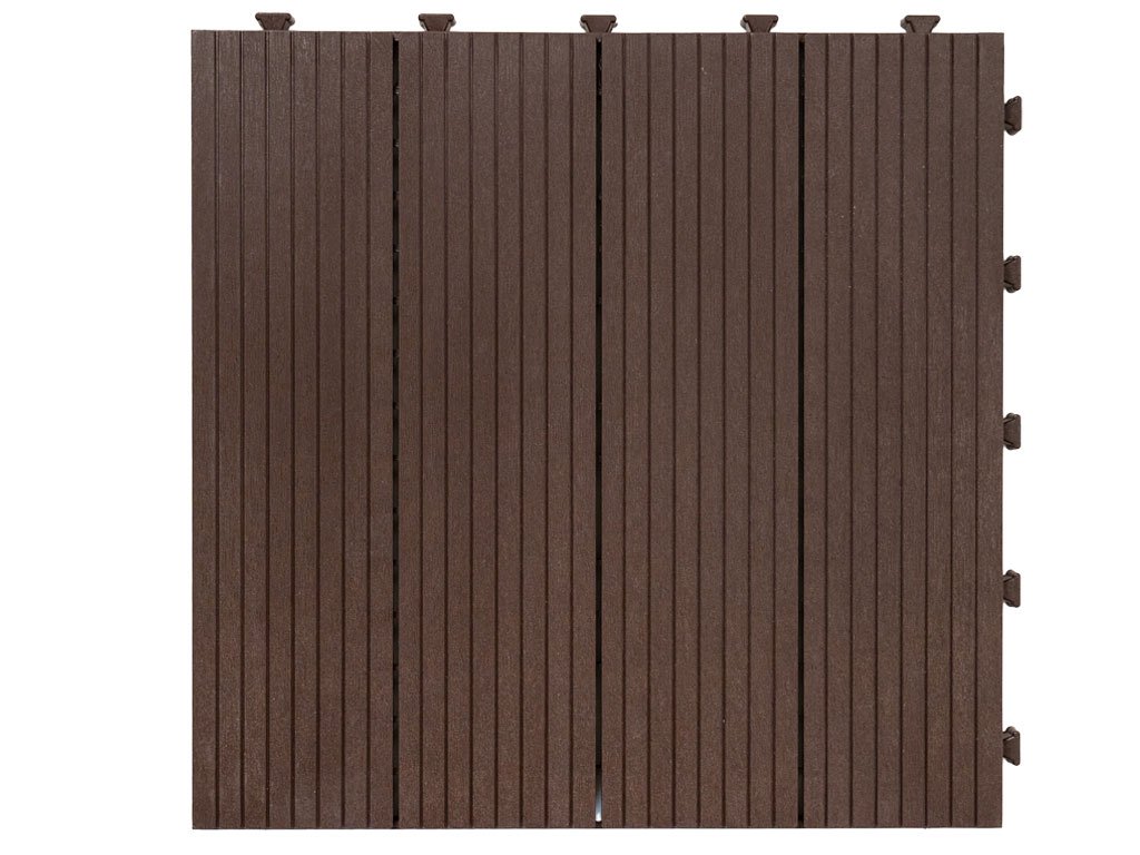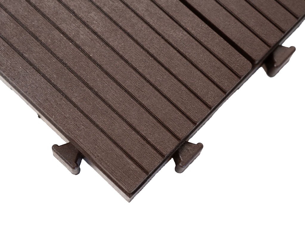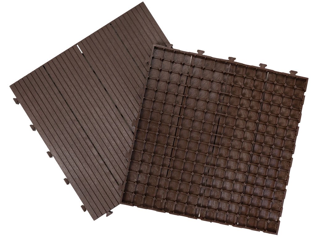 Gumová dlaždice 45 x 45 cm, zesílená tloušťka 2,5 cm, hnědá barva. Směs gumové pryže a polypropylenu (100% recyklované materiály) s dlouhou životností a vysokou odolností. Velmi snadná montáž.