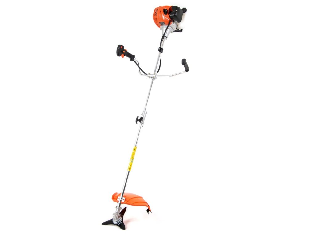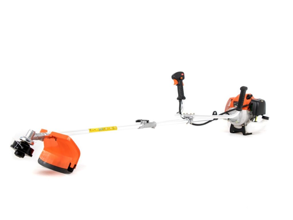 - Je vybaven strunovou hlavou (pracovní šířka 45 cm) a řezacím kotoučem (pracovní šířka 25,5 cm).