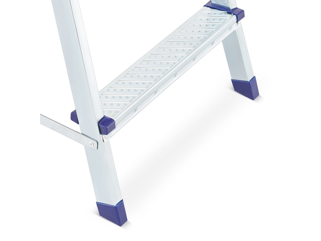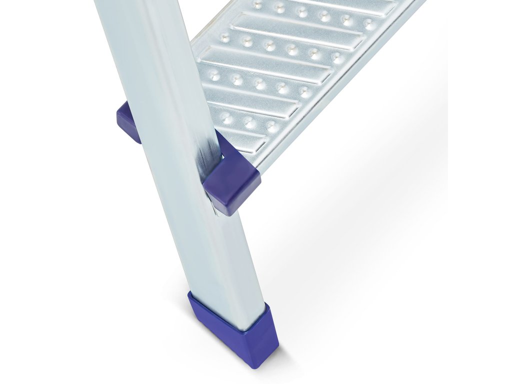 U žebříku HIGHER® pro domácnost se zaměřujeme především na bezpečnost a komfort užívání. Při konstrukci našeho žebříku používáme pevné protiskluzové schůdky se speciálním designem pro zajištění bezpečnosti při práci. Schůdky jsou hluboké až 7 cm, což poskytuje stabilní a silnou oporu pro chodidlo. Stupně jsou zakončeny speciálními plastovými pouzdry, která chrání před ostrými hranami. Horní madlo je zakryto ocelovým závěsem, které je extrémně pevné a odolné a také poskytuje pohodlný systém při skládání a rozkládání žebříku.