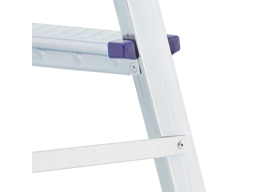 Konstrukce našeho domácího žebříku HIGHER® je založena na využití lehkého kovu, a to z dobrého důvodu. Odpověď je jednoduchá - ocel nabízí výrazně vyšší tuhost, trvanlivost a pevnost než hliník. Navíc díky ocelovým schůdkům vyrobeným z jediného kusu plechu s protiskluzovými rýhami jsme dosáhli mimořádně pevné, robustní a odolné konstrukce žebříku, který je ideální pro domácí práce. Hmotnost našeho žebříku je srovnatelná s hliníkovým žebříkem, takže pokud je pro vás hmotnost klíčové kritérium, můžete s klidem sáhnout po našem řešení.