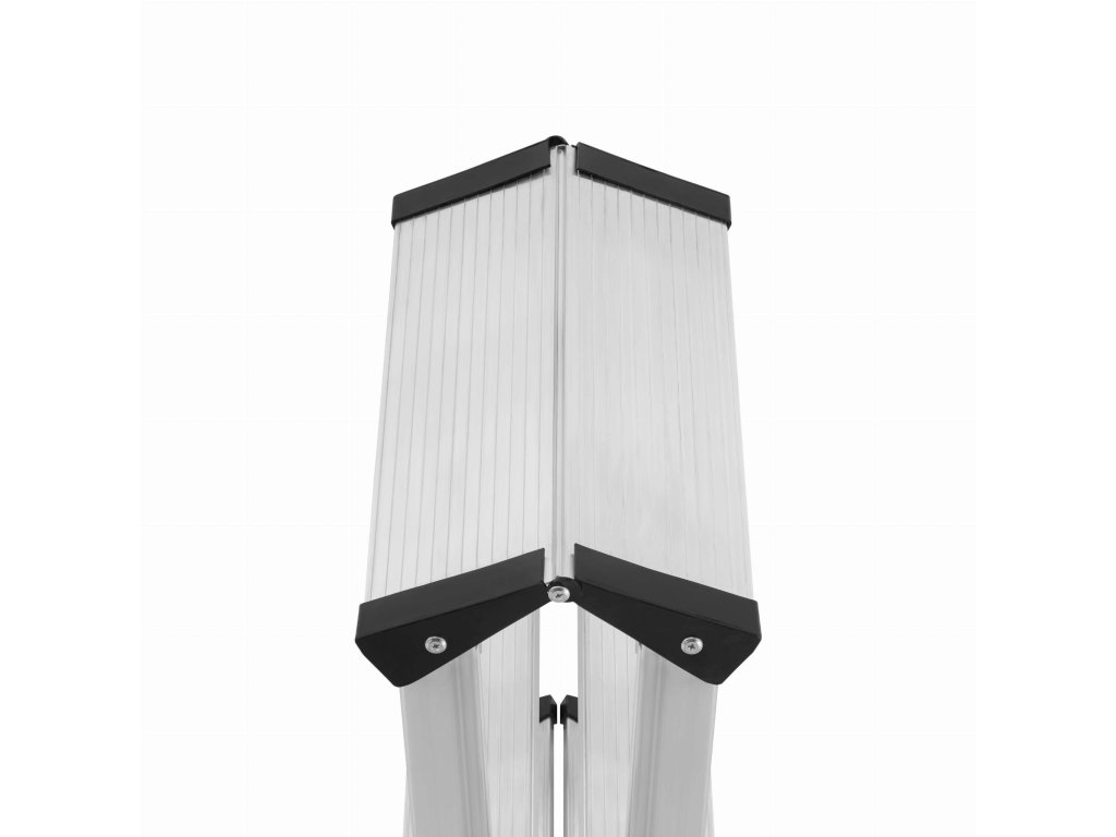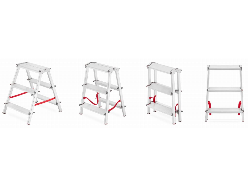 Každodenní úklidové činnosti, nebo snad drobné renovace? Zvládnete je bez větší námahy pomocí dvoustranného žebříku Higher. Silný, lehký, odolný, ale především stabilní díky hliníkovým profilům namontovaným na inovativních trojúhelníkových nožkách. Díky lehké a kompaktní konstrukci je tento nástroj mimořádně všestranný a praktický v každodenním životě. Inovativní systém rychlého skládání a malá velikost složeného žebříku znamená, že nevyžaduje zvlášť velký úložný prostor, jen malý prostor ve skříni.