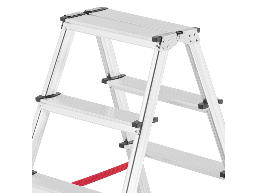 - protiskluzová drážkovaná horní plošina, která je tvořena dvěma vedle sebe umístěnými kroky. Police je vhodným místem pro odložení nástrojů, čisticích prostředků nebo kbelíků