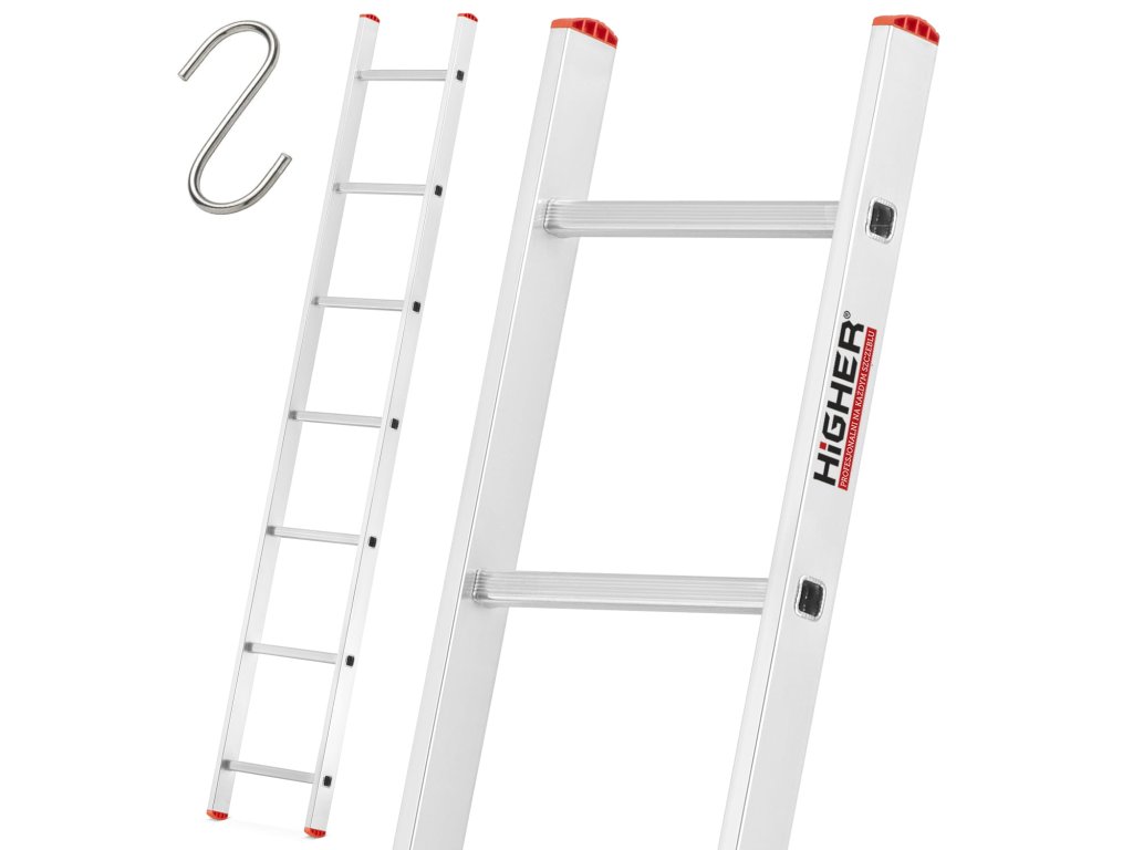 Hliníkový žebřík řady 1x7 HIGHER 71PRO s certifikátem + hákem zdarma