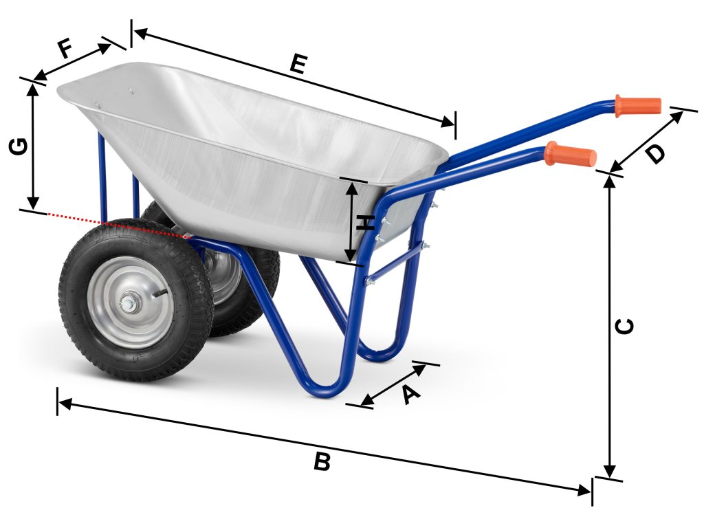 Robustní dvoukolové stavební a zahradní kolečko HIGHER KPGD-567/1 s objemnou pozinkovanou korbou o objemu 140 litrů a nosností až 250 kg je ideálním pomocníkem pro profesionály i domácí kutily. Využijete ho na stavbě, na farmě i na zahradě. Díky dvěma kolům je kolečko výrazně stabilnější než klasické jednokolové, což usnadňuje manipulaci i s těžkým nákladem. Odolná konstrukce ze silné oceli zaručuje dlouhou životnost a spolehlivost i při každodenním používání.