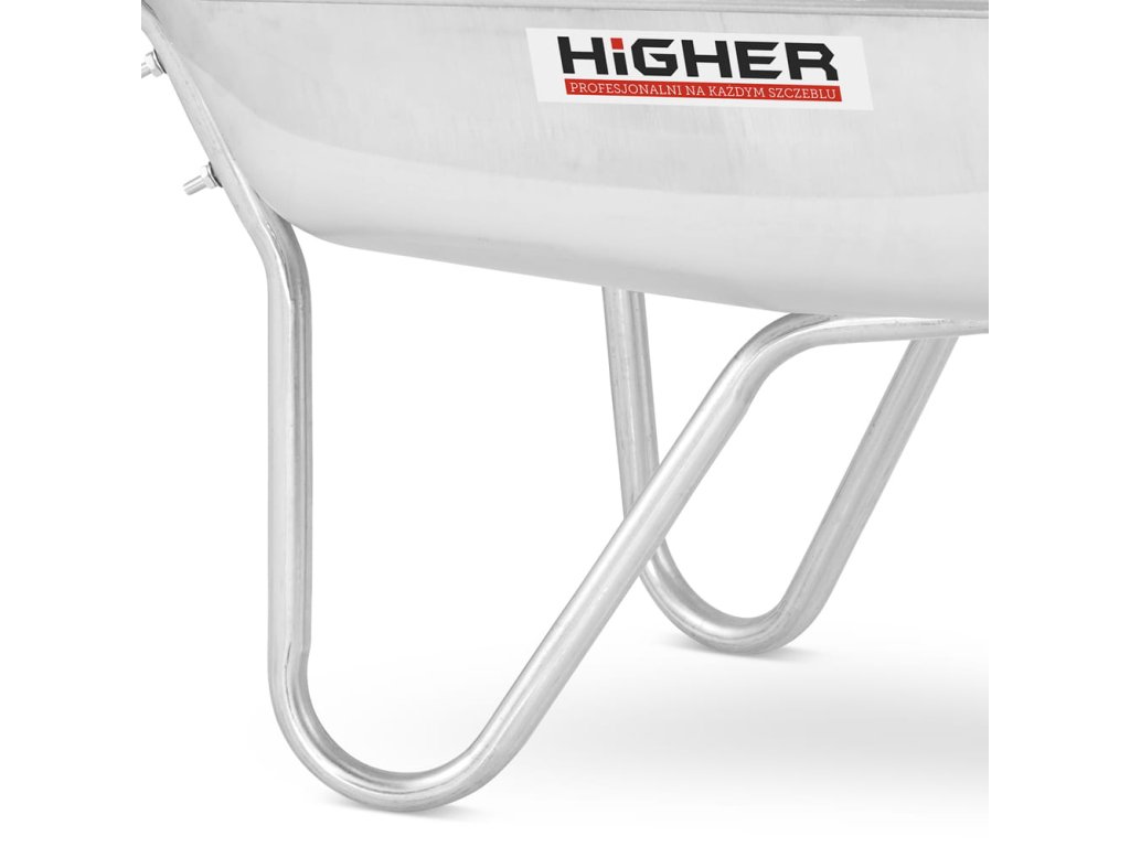 - Lisovaný trakař HIGHER je celý žárově zinkovaný - od bubnu až po rám