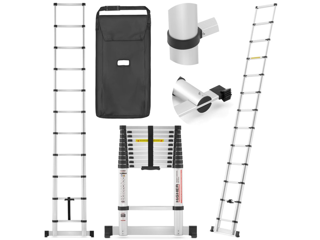 Hledáte do své domácnosti kompaktní, lehký a přitom univerzální nástroj pro práce ve výškách? Teleskopický žebřík HIGHER je jasnou volbou. Díky své moderní konstrukci, která se skládá z hliníkových trubek různých průměrů, můžete tento žebřík snadno složit do neuvěřitelně malé velikosti. Jeho elegantní černé pouzdro navíc usnadňuje jak přepravu, tak i skladování. A nejlepší na tom všem? Nejste omezeni vlastnictvím dílny, celého sklepa nebo garáže. Tento žebřík nevyžaduje speciální rukojeti pro přepravu. Můžete ho jednoduše zasunout pod postel, uložit do skříně nebo ho nechat v kufru auta. A jakmile ho budete potřebovat, stačí ho vytáhnout z pouzdra a přenést na místo určení. Práce ve výškách tak bude hračkou! Zní to dobře, že?