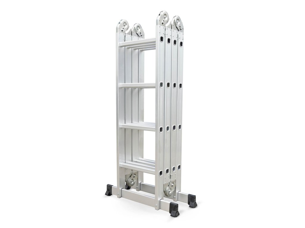 Hliníkové štafle můžete využít jednak jako dlouhý žebřík v délce až 4,6 m. Další variantou je možnost sestavit štafle jako přenosné lešení. Díky konstrukci s klouby lze štafle snadno umístit přes hřeben střechy.