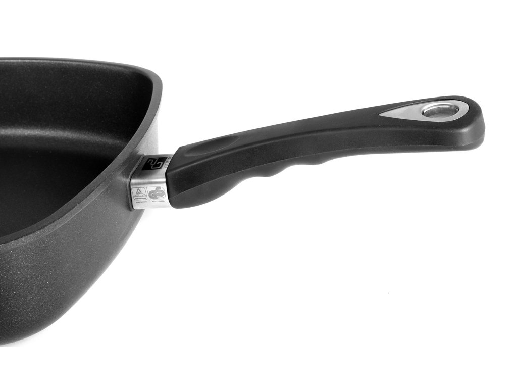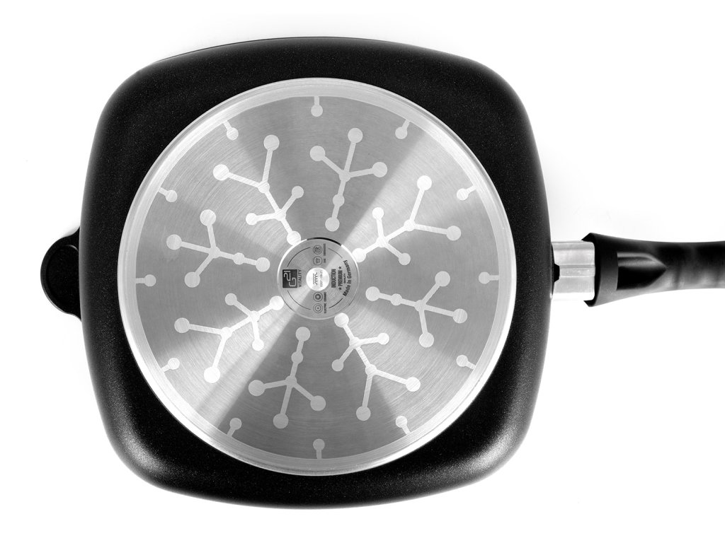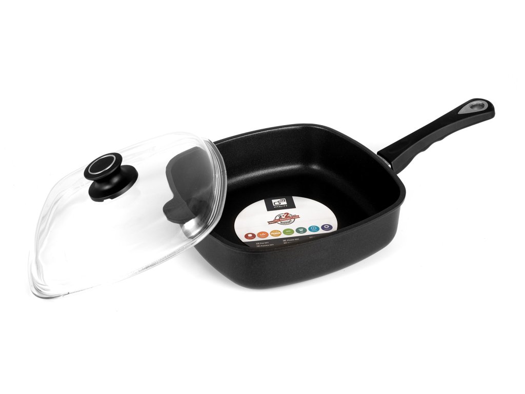 Prohlédněte si čtvercovou, 8 cm vysokou pánev, která splňuje všechny uvedené požadavky na dokonalou pánev. Je univerzální pro všechny typy ohřevů, teplo vede dokonale rovnoměrně, jídlo se na ní díky speciální nepřilnavé vrstvě LOTAN® nepřipaluje a smažit či zapékat můžete bez použití oleje.
