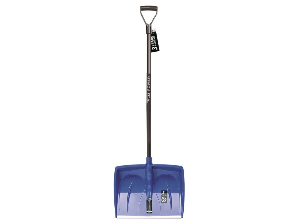 Hrablo z kvalitního plastu a kovu, hliníková hrana pro snazší nabírání sněhu, odolnost vůči teplotám do -28 °C. Ergonomická násada s pogumovanou částí pro pohodlný a bezpečný úchop. Modrá barva.