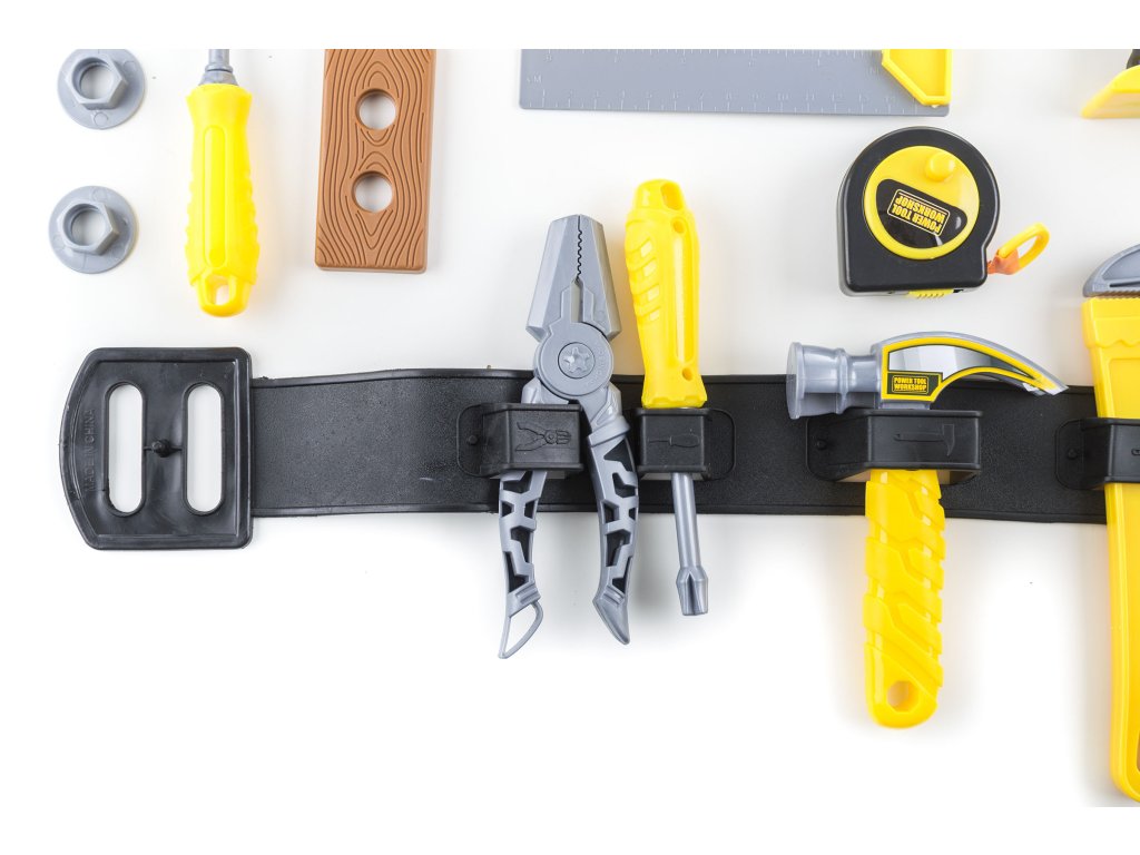 V sadě najdete vrtačku s vrtáky, klíče, šroubky, matky, kladivo, šroubovák, svěrák, pily, podložky na vrtání, metr, úhloměr, posuvné měřítko, kleště, ochrannou přilbu a mnoho dalšího. Zkrátka vše, co je v dílně potřeba. Hra s nářadím zlepšuje dětem motoriku, cvičí jejich trpělivost a hlavně jim přinese spoustu zábavy.
