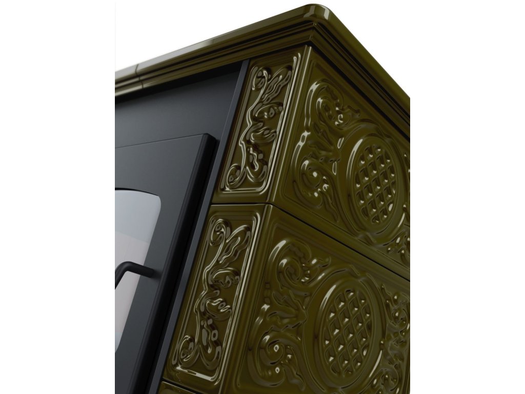 Kachlová kamen Bali jsou navíc obložena pravými, ručně vyráběnými kachlemi. Design kachlí byl speciálně vykreslen našimi designéry a nese název "zpovědnice". Kachle jsou akumulačním materiálem a z toho důvodu se akumulační schopnost kamen značně navyšuje.
