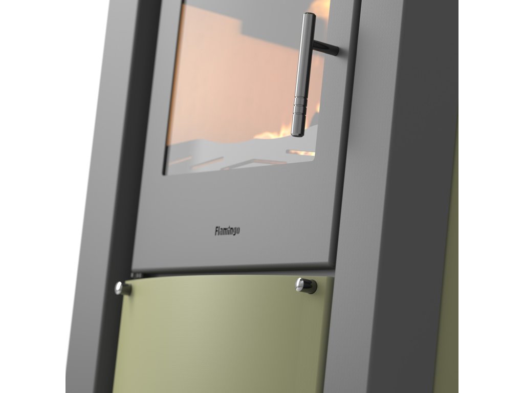 Krbová kamna HS Flamingo Amos krémová metalická jsou díky své vysoké kvalitě a velmi rozumné ceně velice žádaným artiklem teplovzdušných kamen na Českém i Evropském trhu. Krbová kamna HS Flamingo AMOS nabízejí standardní možnost externího napojení přívodu vzduchu. Pro co nejefektivnější spalování je přivedený vzduch dále rozdělen na primární (pod rošt), sekundární na oplach skla a terciální pro podporu spalování plynných částic. Komora je vykonstruovaná tak, aby byla dosažená vysoká účinnost a malá spotřeba paliva, která činí průměrně 2kg na hodinu. Vnitřek spalovacího prostoru tvoří český šamot a litinový rošt. Díky tomu je komora téměř nesmrtelná. Kamna jsou vyrobena z 3 a 5 mm plechu, kde 5mm plech je použit převážně na spalovací komoru. Díky tomu poskytujeme na krbová kamna záruku 5 let.