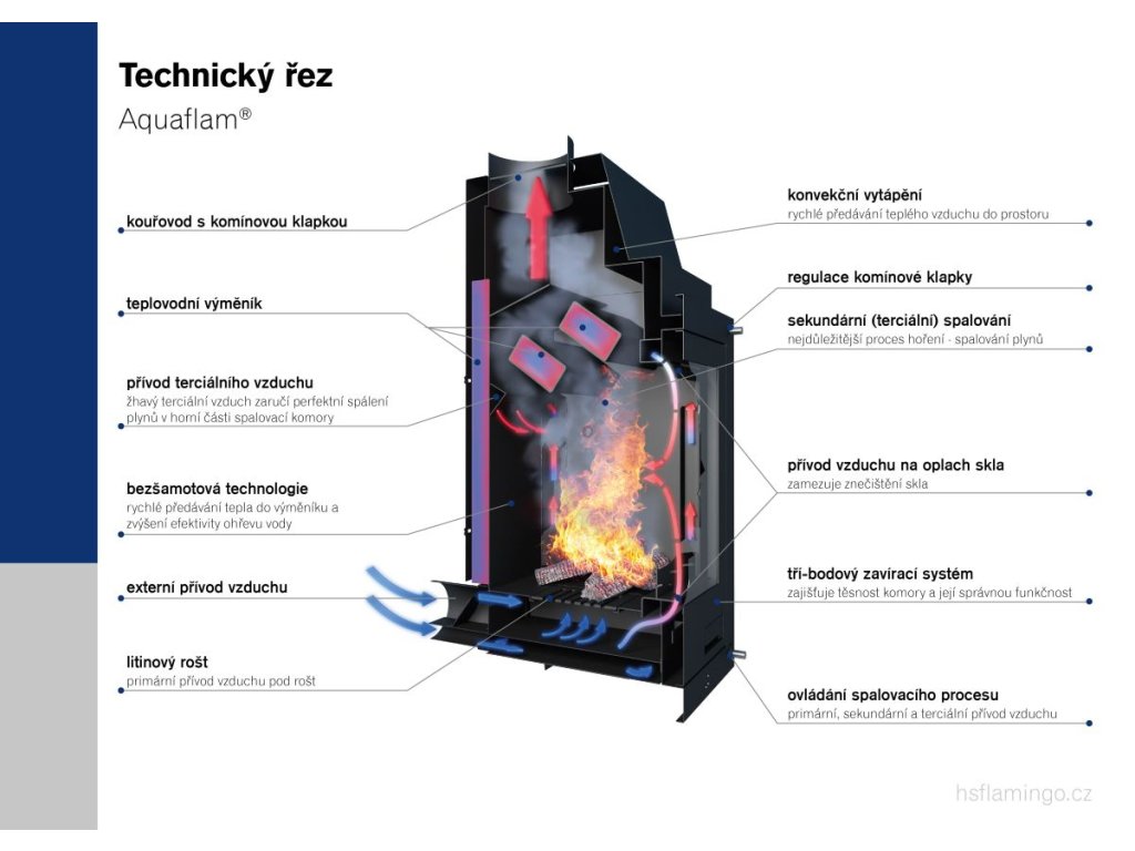 HS FLAMINGO krbová kamna AQUAFLAM 12 s výměníkem automatická regulace šedá