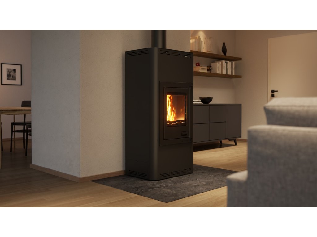 Krbová kamna Aquaflam 12 s výměníkem - černá, manuální regulace mají mnoho nadstandardních doplňků, čímž velmi výrazně předhání konkurenční výrobky. Inovativní prvky směřují především ke zlepšení obsluhy krbových kamen. Použitý materiál je pečlivě vybírán tak, aby dosahoval nejvyšší kvality. Pro bezpečnost zákazníka jsou krbová kamna vybavena standardně ochlazovací smyčkou a stále otevřeným terciálním vzduchem, který zabraňuje hromadění plynů ve spalovací komoře. Základní a automatická regulace navíc zavírá přívod vzduchu při přetopení. Krbová kamna AQUAFLAM dosáhly na nejpřísnější evropské normy jako jsou BImSchV – Stufe 2, 15a B-VG, DINplus, Flamme Verte.