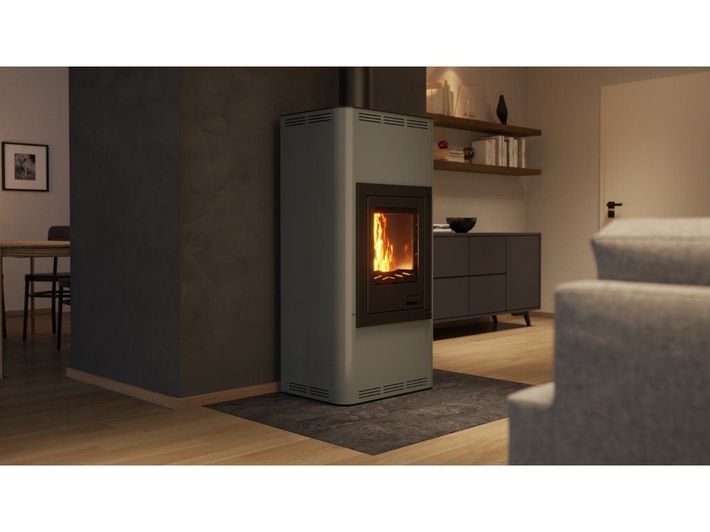 Krbová kamna Aquaflam 12 s výměníkem - šedá, základní regulace mají mnoho nadstandardních doplňků, čímž velmi výrazně předhání konkurenční výrobky. Inovativní prvky směřují především ke zlepšení obsluhy krbových kamen. Použitý materiál je pečlivě vybírán tak, aby dosahoval nejvyšší kvality. Pro bezpečnost zákazníka jsou krbová kamna vybavena standardně ochlazovací smyčkou a stále otevřeným terciálním vzduchem, který zabraňuje hromadění plynů ve spalovací komoře. Základní a automatická regulace navíc zavírá přívod vzduchu při přetopení. Krbová kamna AQUAFLAM dosáhly na nejpřísnější evropské normy jako jsou BImSchV – Stufe 2, 15a B-VG, DINplus, Flamme Verte.
