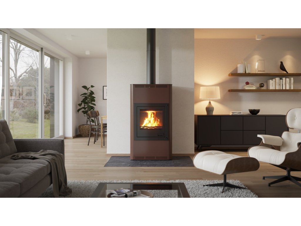 HS FLAMINGO krbová kamna AQUAFLAM 17 s výměníkem manuální regulace hnědá-sametová