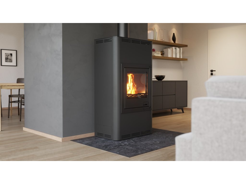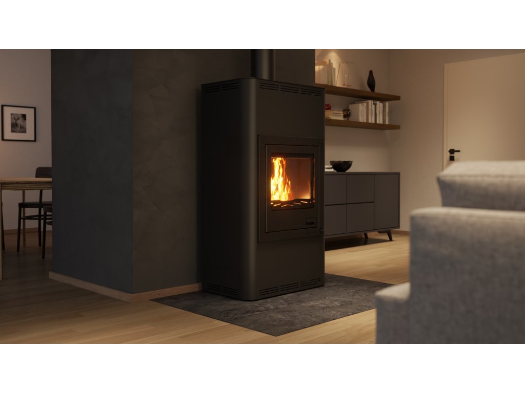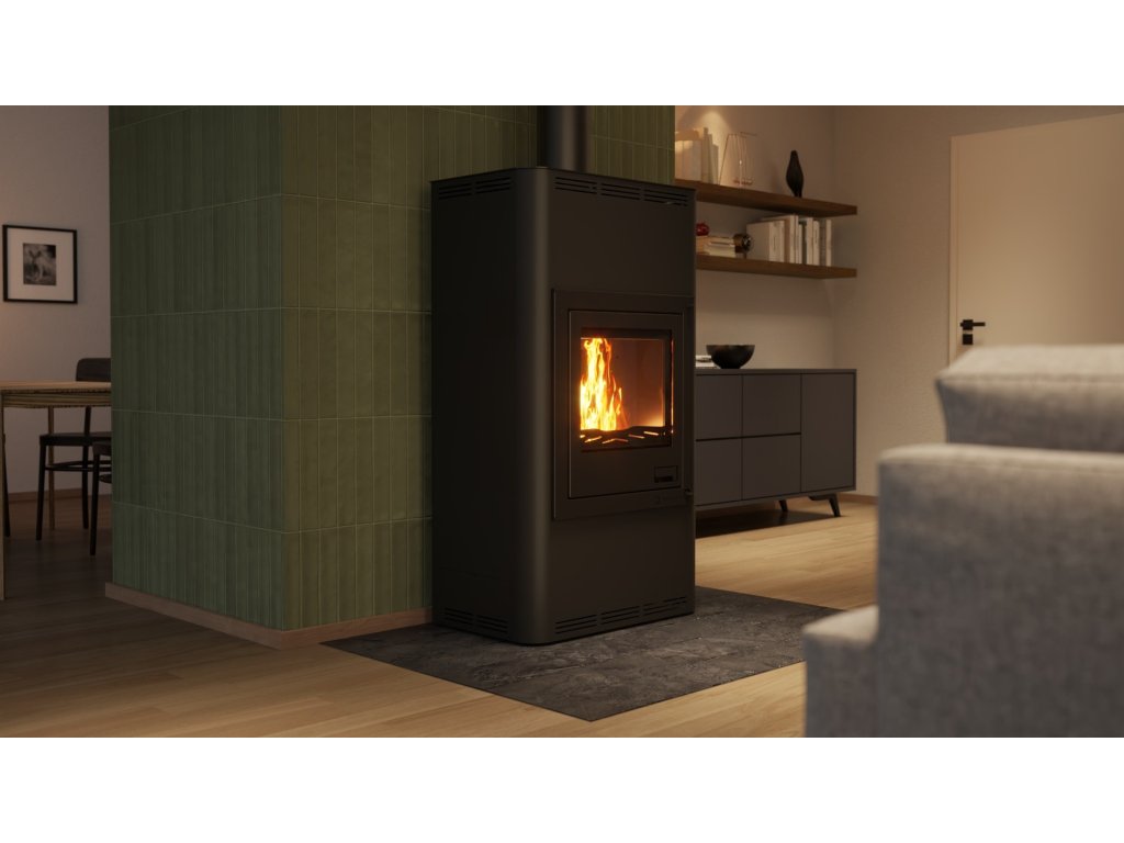 Krbová kamna Aquaflam 17 s výměníkem - černá, základní regulace mají mnoho nadstandardních doplňků, čímž velmi výrazně předhání konkurenční výrobky. Inovativní prvky směřují především ke zlepšení obsluhy krbových kamen. Použitý materiál je pečlivě vybírán tak, aby dosahoval nejvyšší kvality. Pro bezpečnost zákazníka jsou krbová kamna vybavena standardně ochlazovací smyčkou a stále otevřeným terciálním vzduchem, který zabraňuje hromadění plynů ve spalovací komoře. Základní a automatická regulace navíc zavírá přívod vzduchu při přetopení. Krbová kamna AQUAFLAM dosáhly na nejpřísnější evropské normy jako jsou BImSchV – Stufe 2, 15a B-VG, DINplus, Flamme Verte.