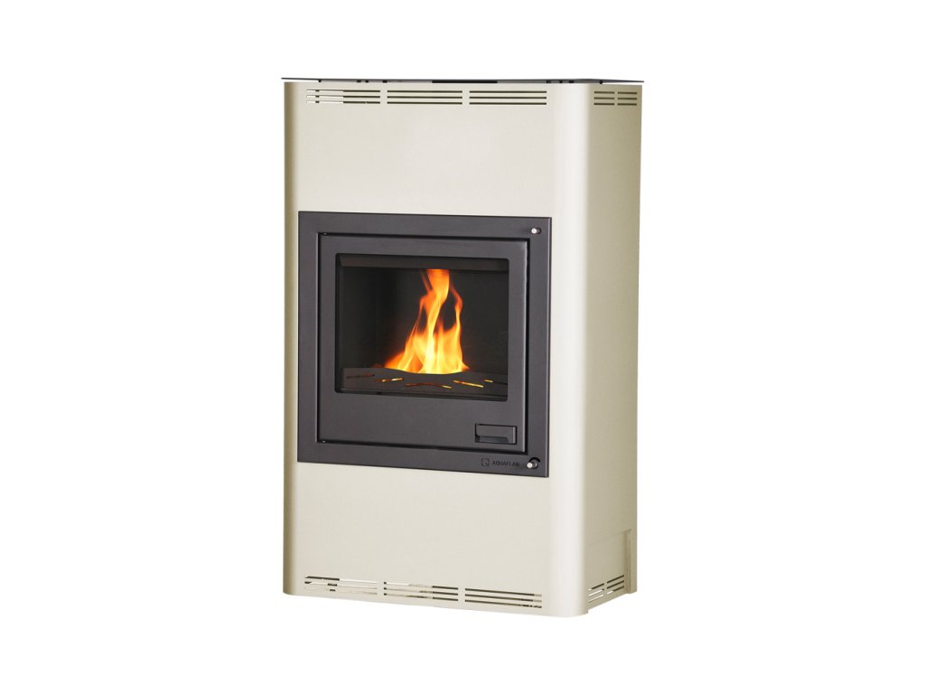 Krbová kamna AQUAFLAM® 25 s výměníkem – krémová, s automatickou regulací