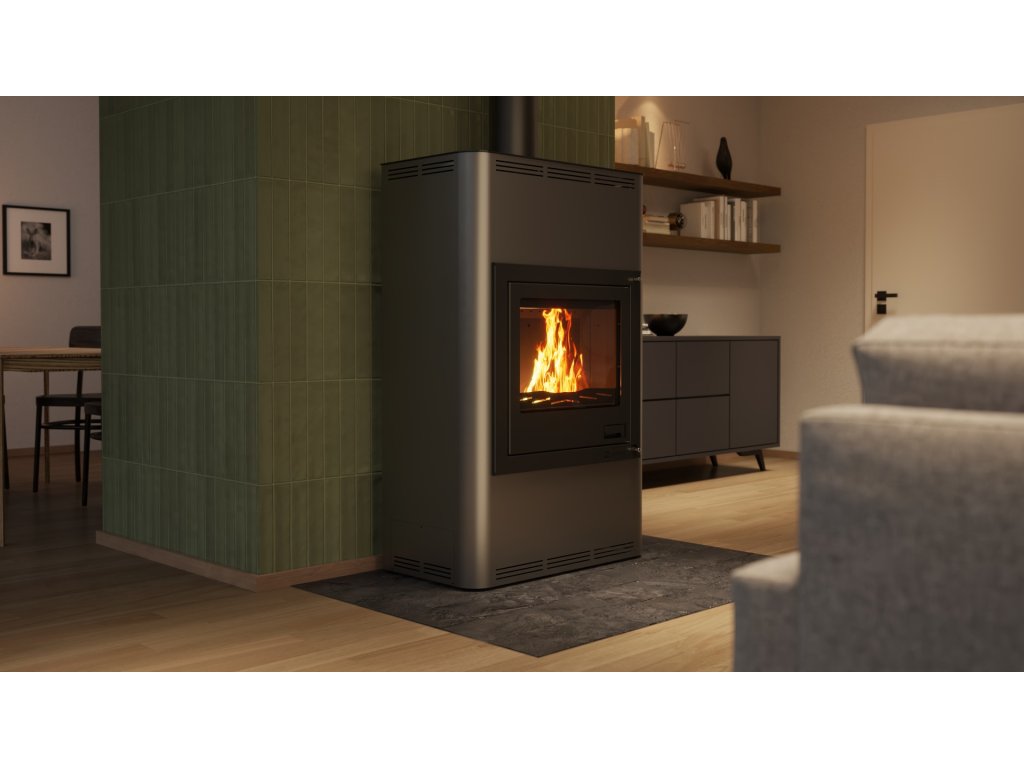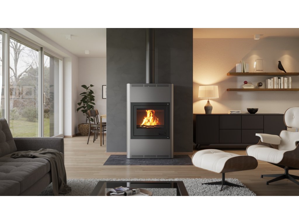 Krbová kamna Aquaflam 25 s výměníkem - šedá, automatická regulace mají mnoho nadstandardních doplňků, čímž velmi výrazně předhání konkurenční výrobky. Inovativní prvky směřují především ke zlepšení obsluhy krbových kamen. Použitý materiál je pečlivě vybírán tak, aby dosahoval nejvyšší kvality. Pro bezpečnost zákazníka jsou krbová kamna vybavena standardně ochlazovací smyčkou a stále otevřeným terciálním vzduchem, který zabraňuje hromadění plynů ve spalovací komoře. Základní a automatická regulace navíc zavírá přívod vzduchu při přetopení. Krbová kamna AQUAFLAM dosáhly na nejpřísnější evropské normy jako jsou BImSchV – Stufe 2, 15a B-VG, DINplus, Flamme Verte.